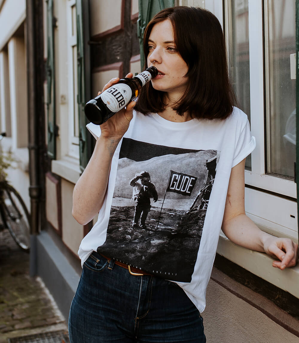 Die Mondlandung hat wirklich stattgefunden! Die Frage, wer überhaupt als erstes auf dem Mond war, wird auf unserem GUDE Mondlandung-Shirt endlich ein für alle Mal geklärt – und zwar per Fotobeweis. Der aufwendige, schwarz-weiße Fotoprint des Shirts zeigt nämlich ein Bild der ersten Mondlandung, inklusive des ersten Mondbesuchers! Der kam nämlich Straight Outta Hessen. So, jetzt ist es raus. Mission completed!